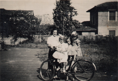 Com a mãe e as irmãs na Vila em que moravam